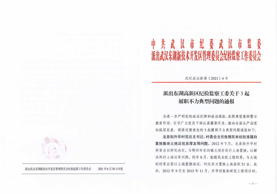 派出東湖高新區紀檢監察工委關于3起履職不力典型問題的通報